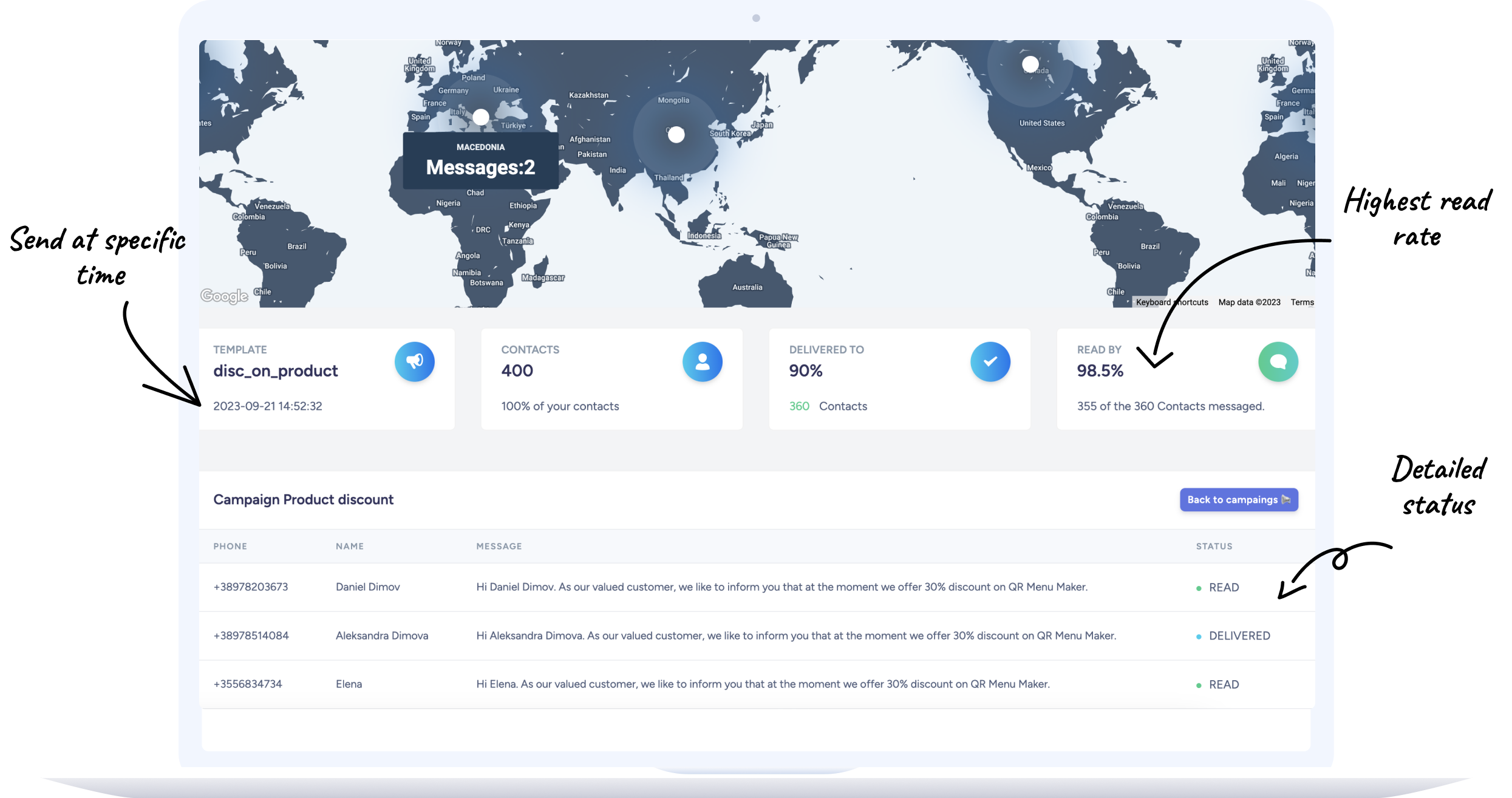 We have send messages to more than 18k+ users in 98 countries worldwide.